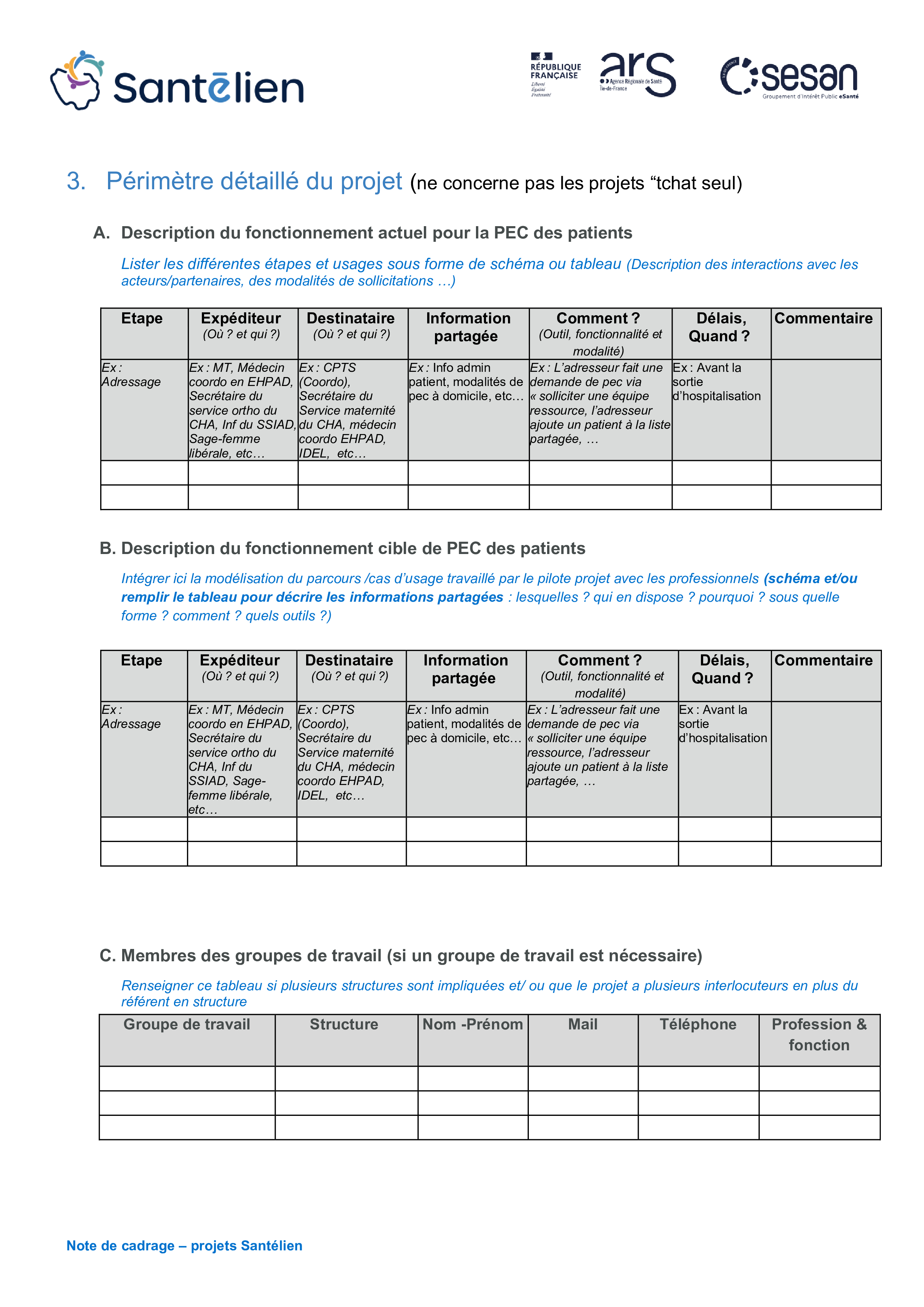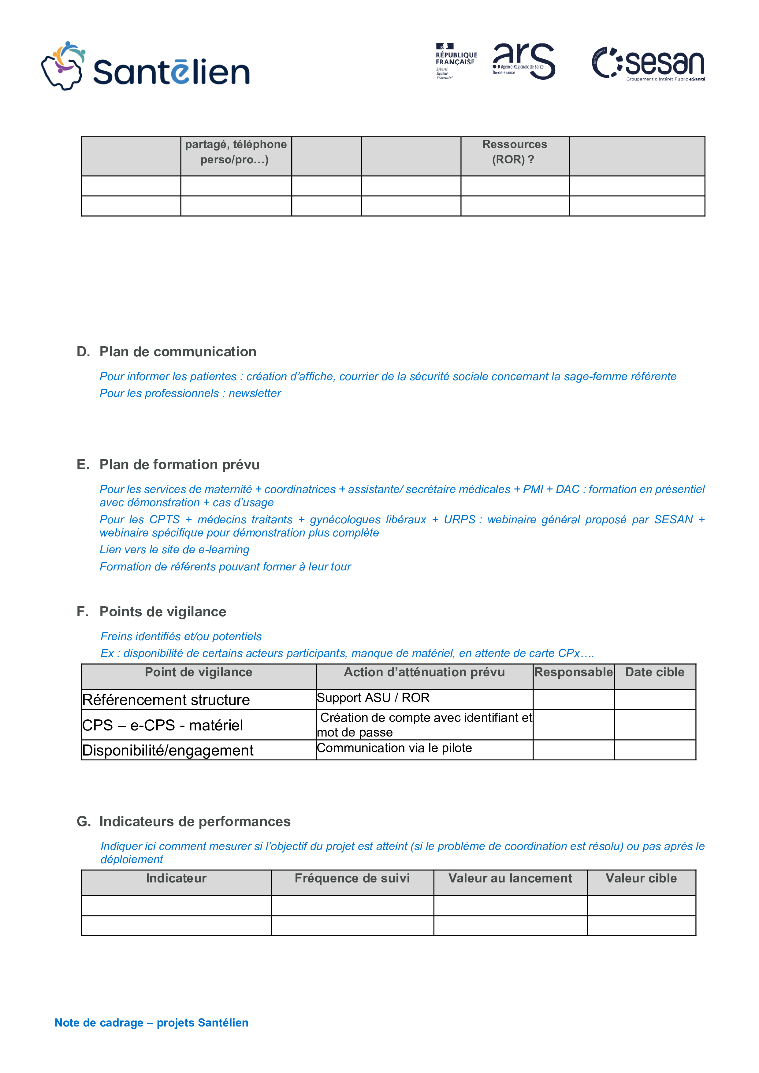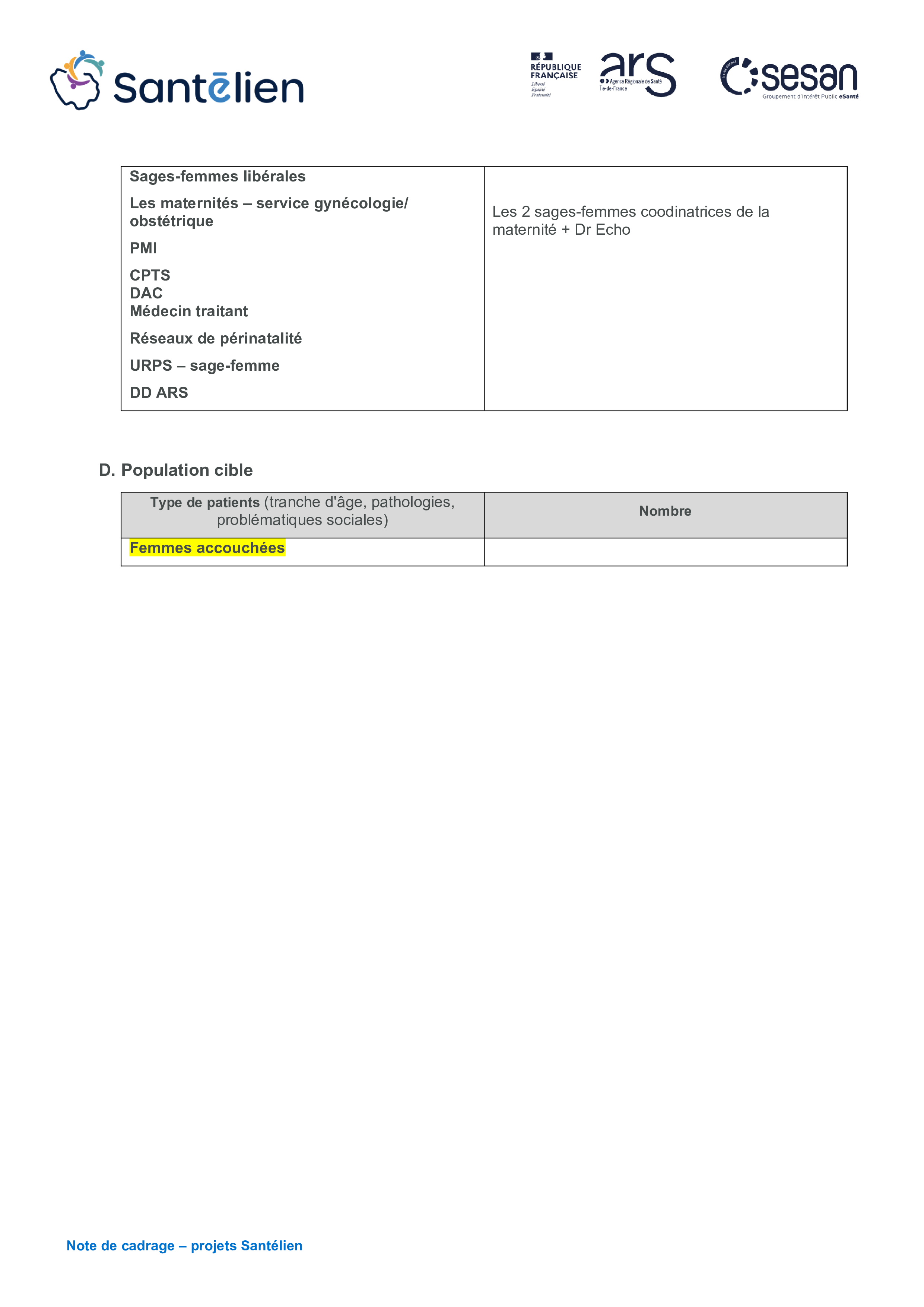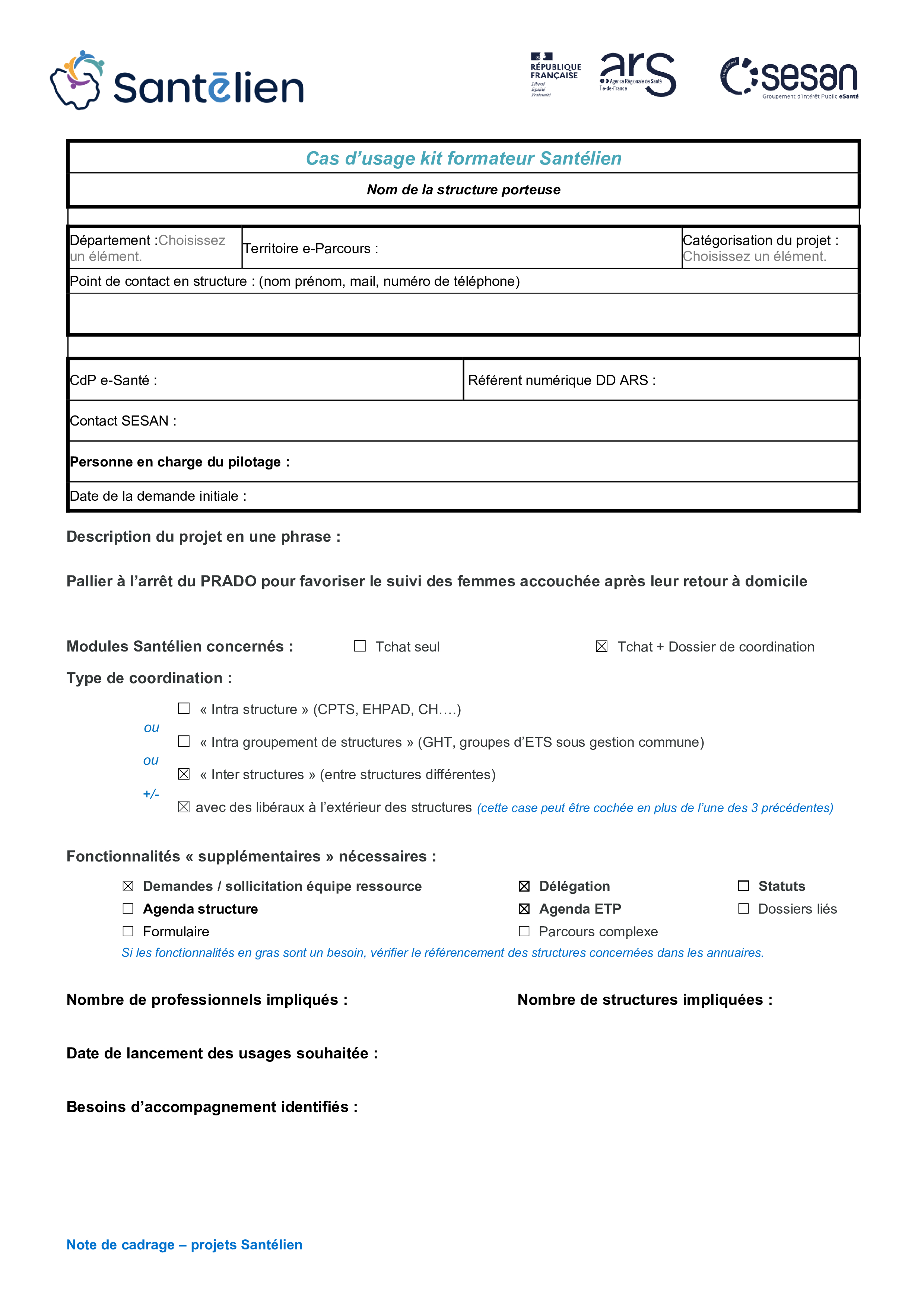 La note de cadrage complétée