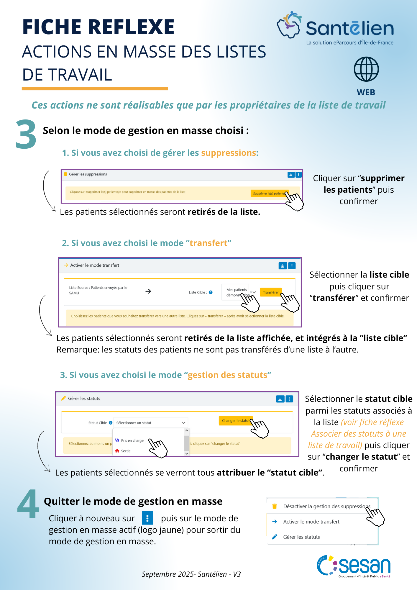 Fiche réflexe web: Actions en masse des listes de travail