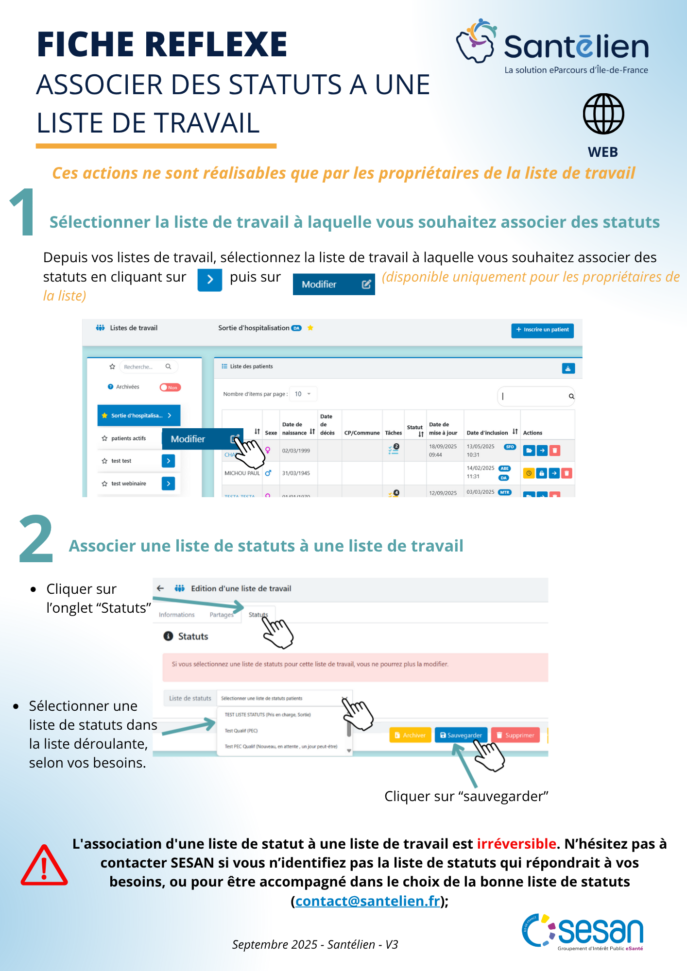 Fiche réflexe Web: Gestion des statuts de listes de travail