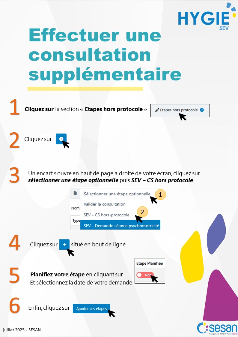 Pour le suivi des enfants vulnérables, 9 consultations sont prévues. Vous avez la posibilité malgré tout d’effectuer jusqu’à deux consultations supplémentaires si besoin. Vous devrez alors créer un formulaire de consultation hors protocole.