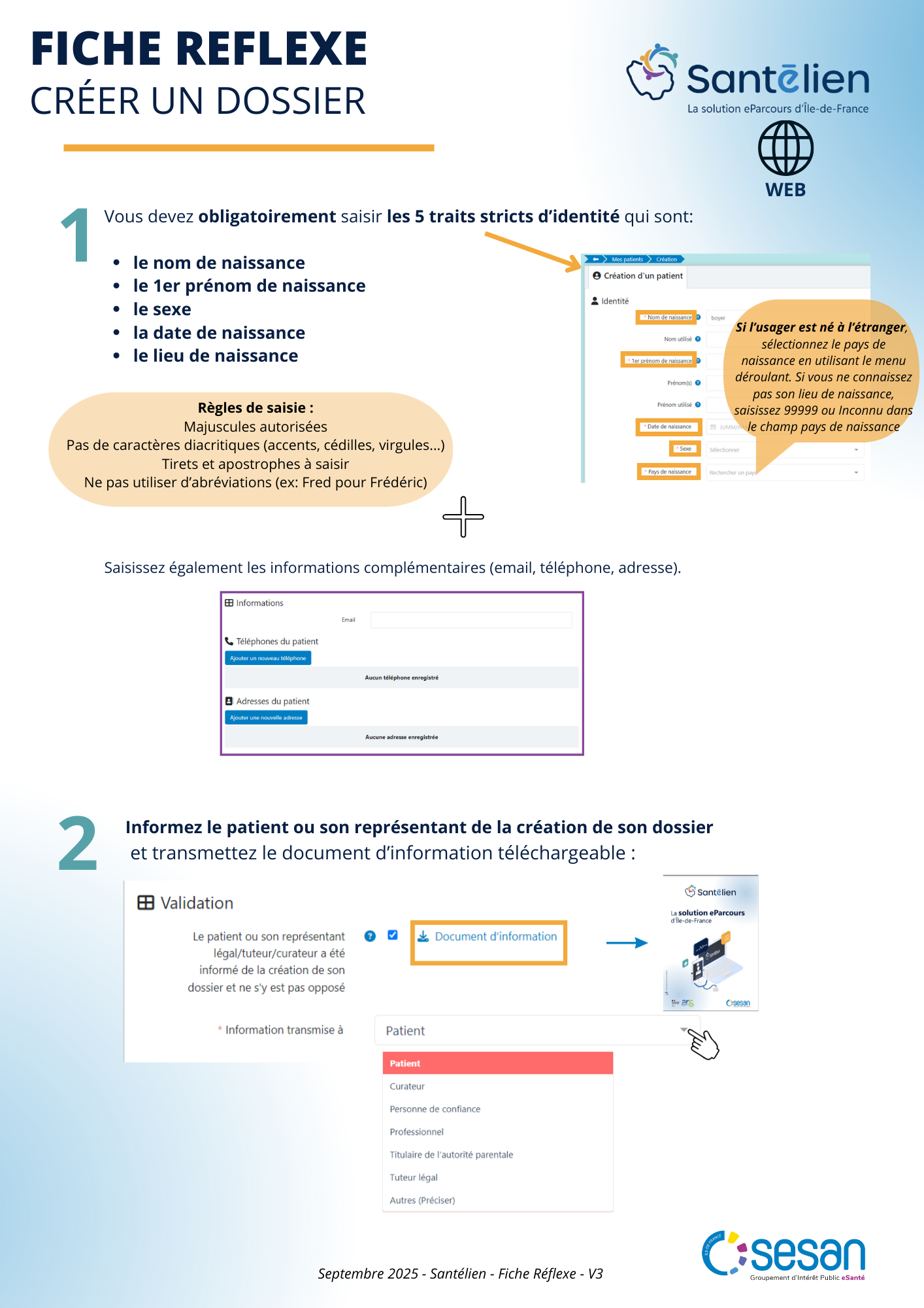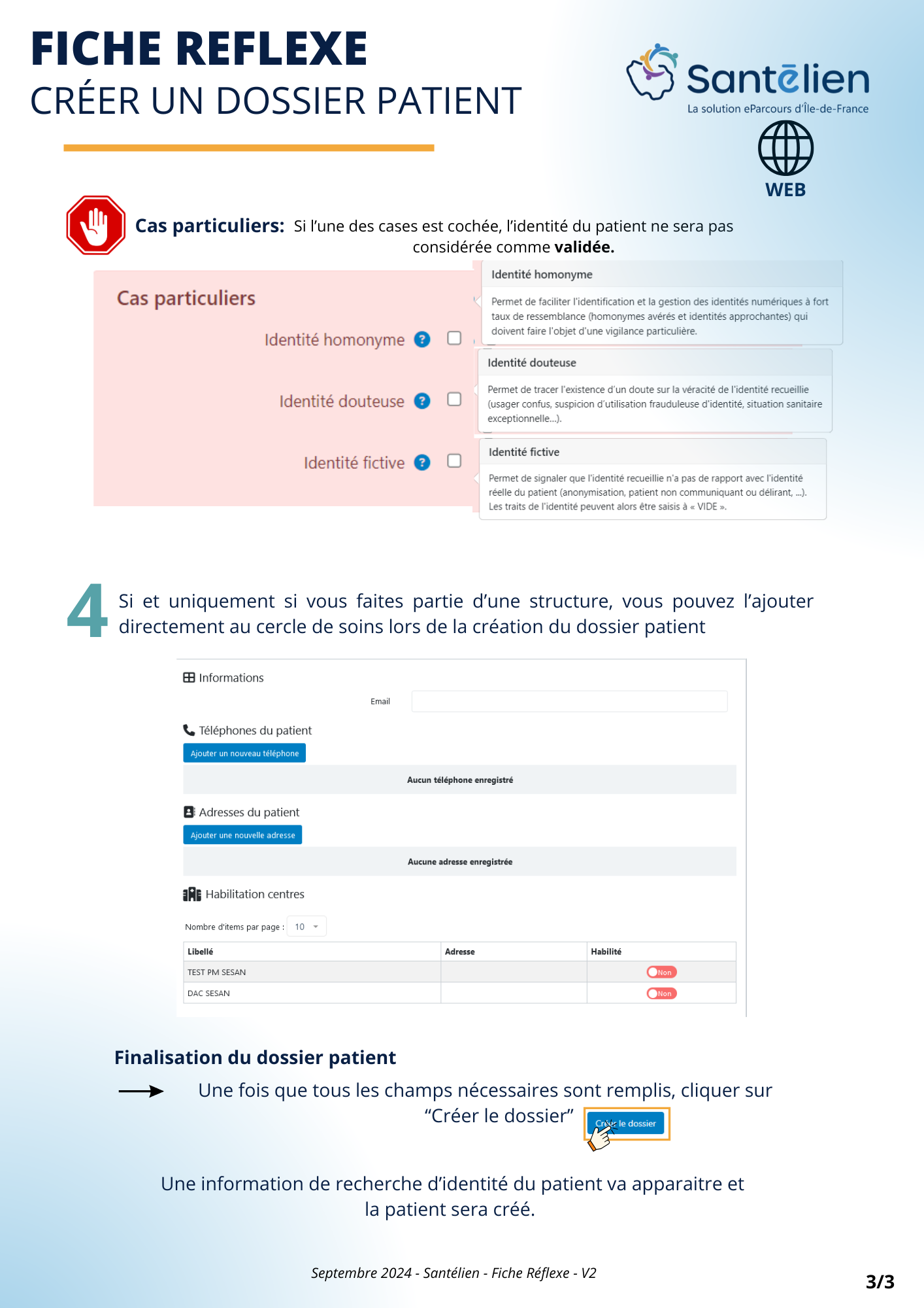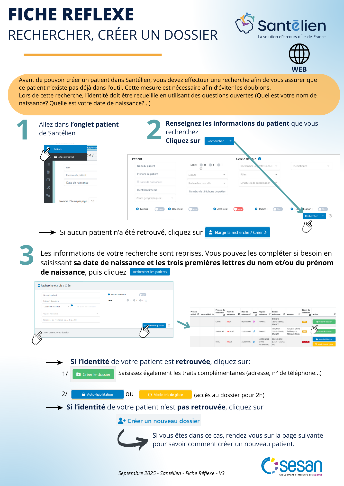 Fiche réflexe Web : Rechercher et créer un dossier patient