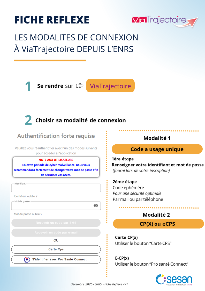 Téléchargez ici la fiche réflexe Se connecter à ViaTrajectoire par l’ENRS.