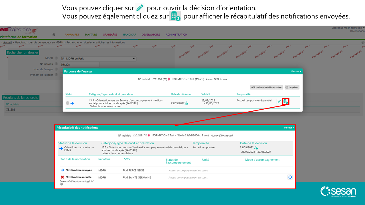 Envoyer une décision d’orientation à un ESMS