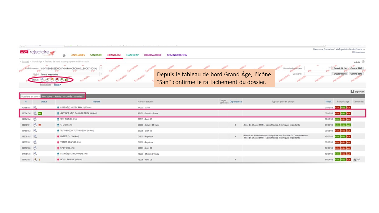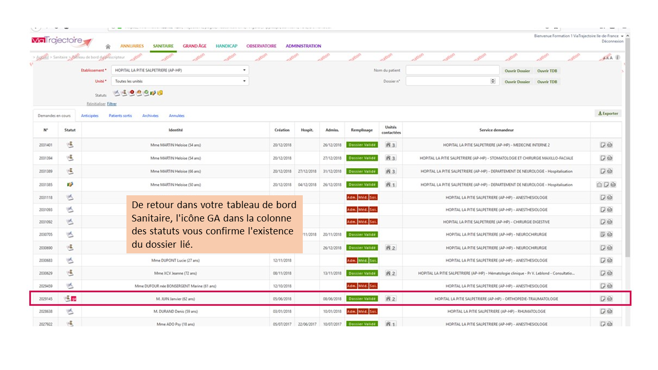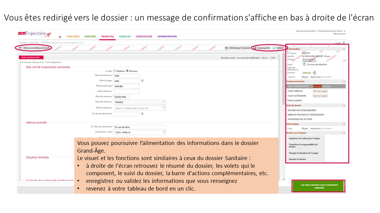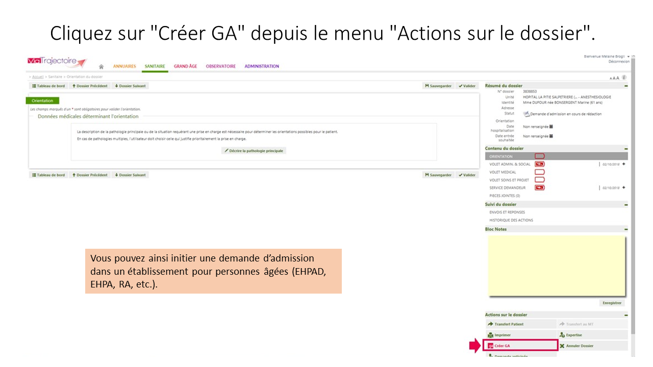 Créer une demande Grand-Age à partir du dossier Sanitaire