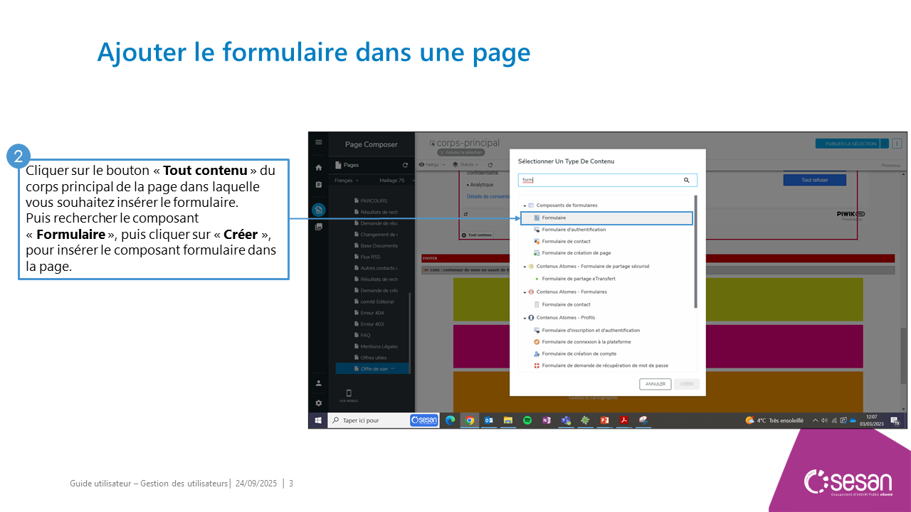 Ajouter un formulaire dans une page