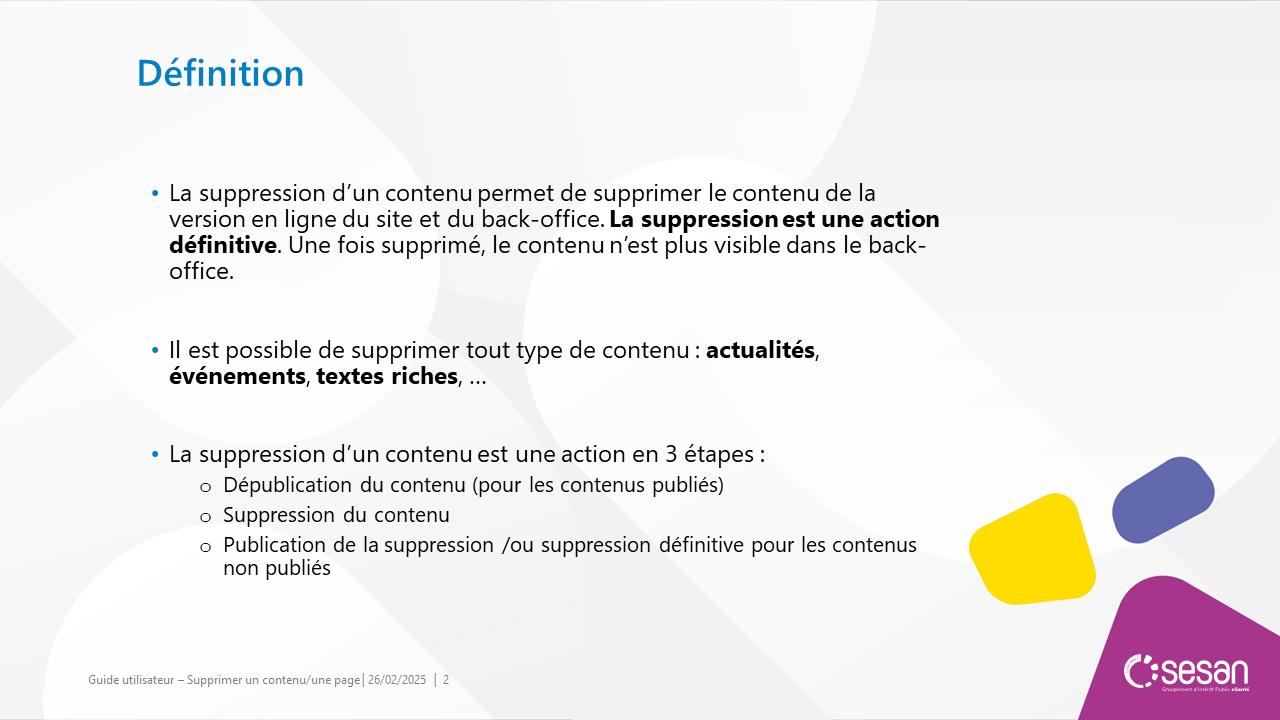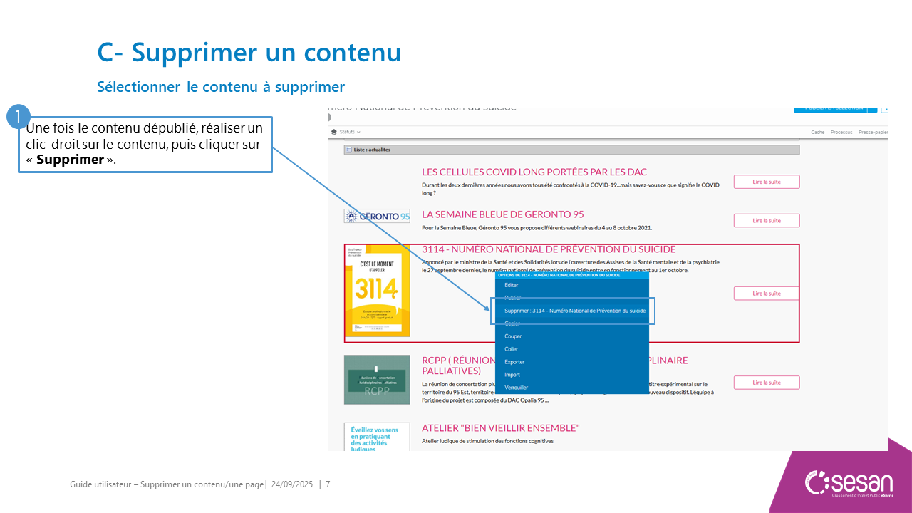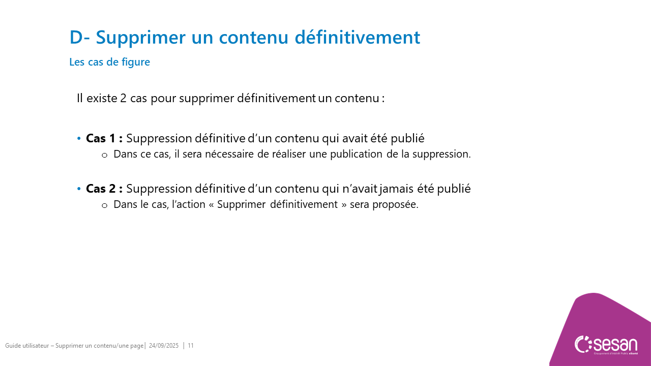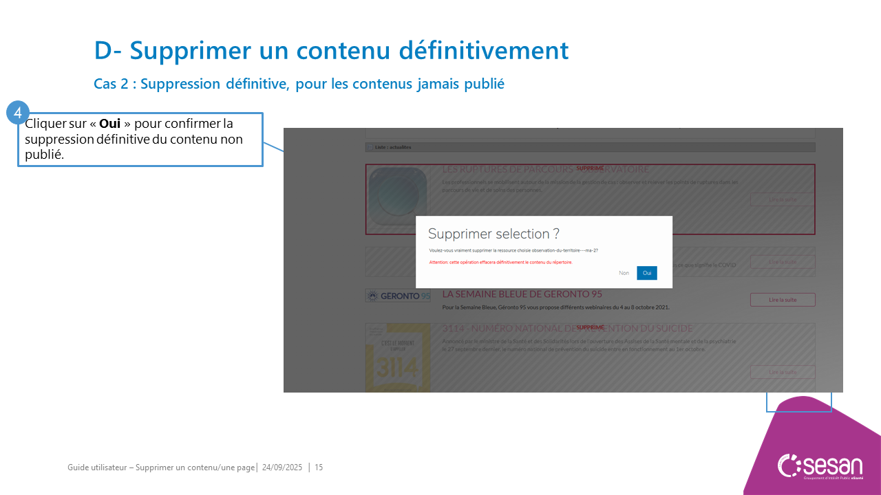Supprimer un contenu ou une page