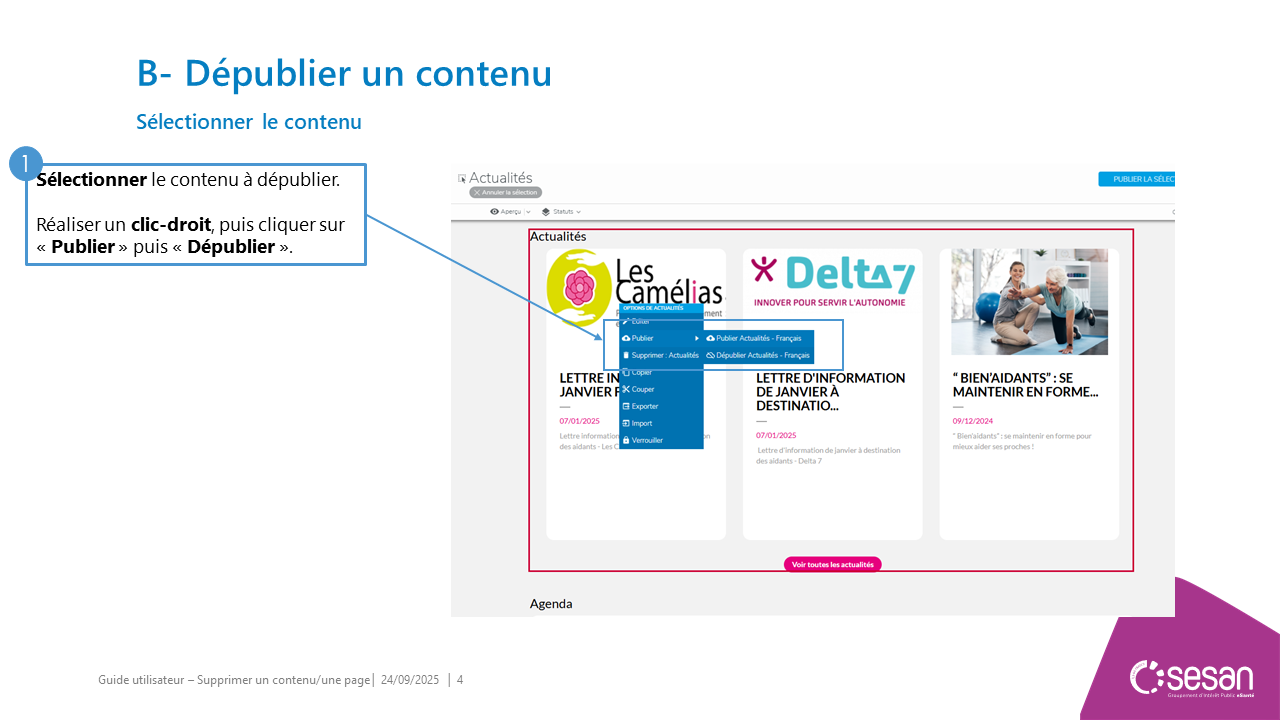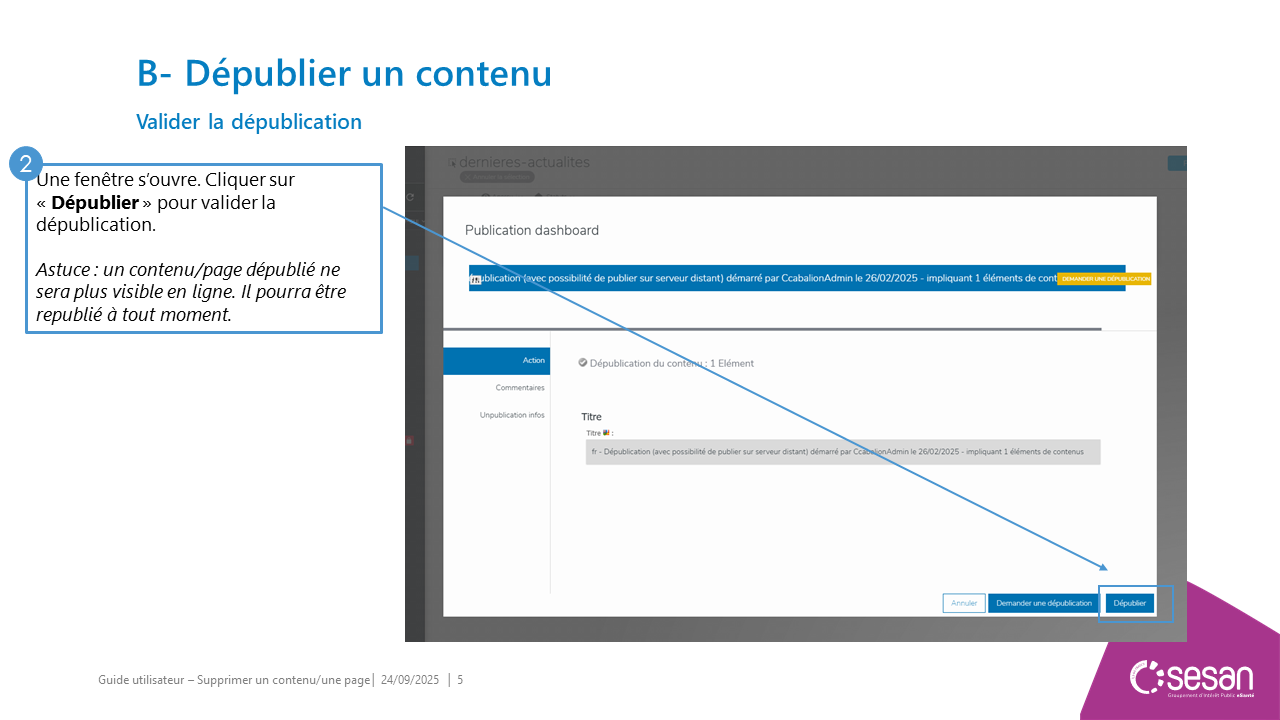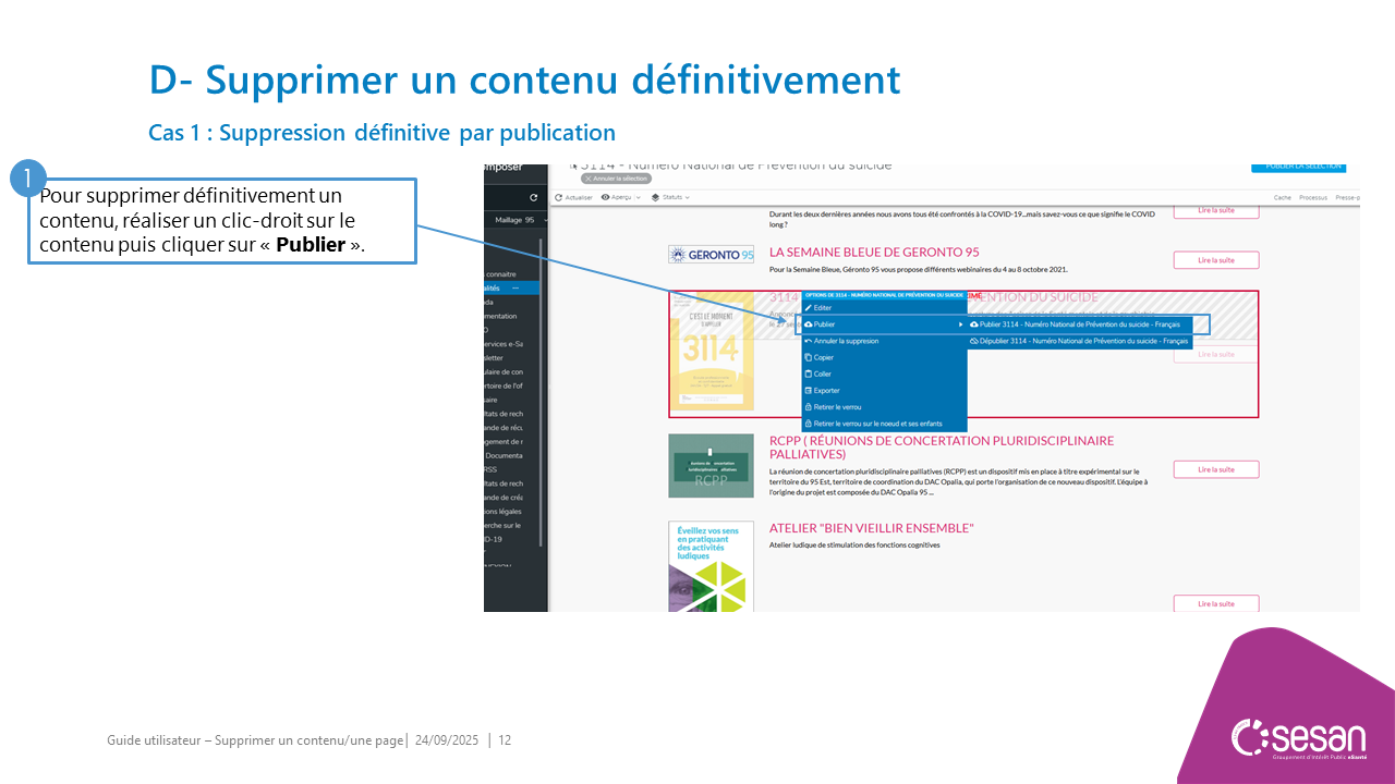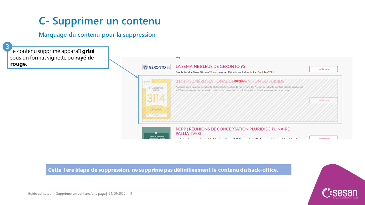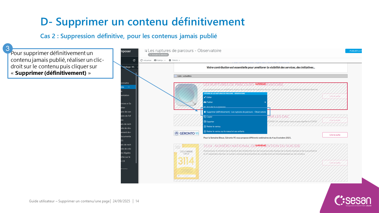 Supprimer un contenu ou une page