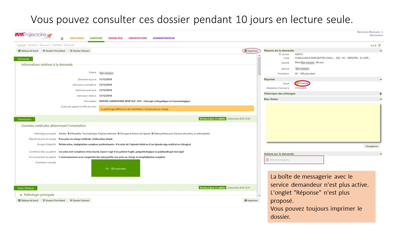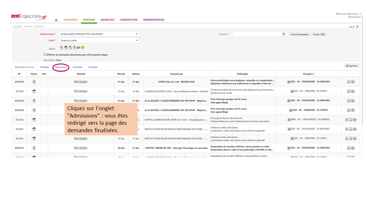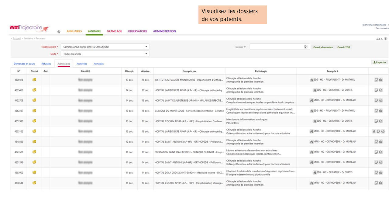 Visualiser les demandes – Dossiers des patients admis